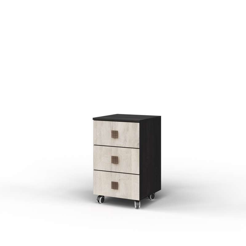 Особенности модели: Детали тумбы, которые в эксплуатации подвержены механическим повреждениям, облицованы кромкой ПВХ толщиной 2 мм. Задняя стенка изготовлена из ХДФ. Тумба устанавливается на колесные опоры и служит отличным дополнением к письменному столу.