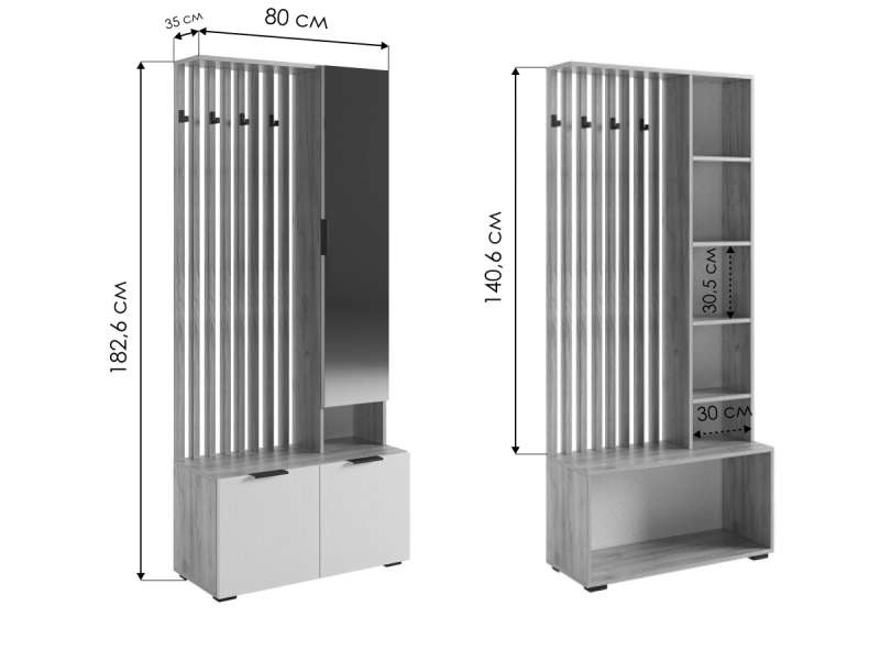 Прихожая Бери дуб крафт золотой / белое дерево (80x35x182,6).