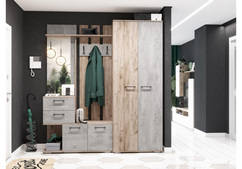 Прихожая Вальс ВШ-1 дуб крафт серый / бетонный камень (110x45x212).