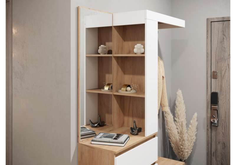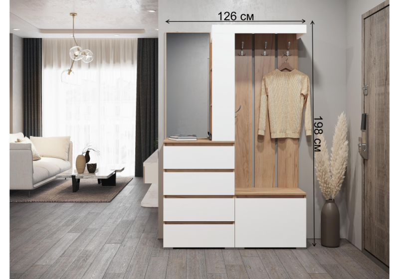Прихожая Элла ПР-01 белый / дуб крафт золото (126x35,3x198).