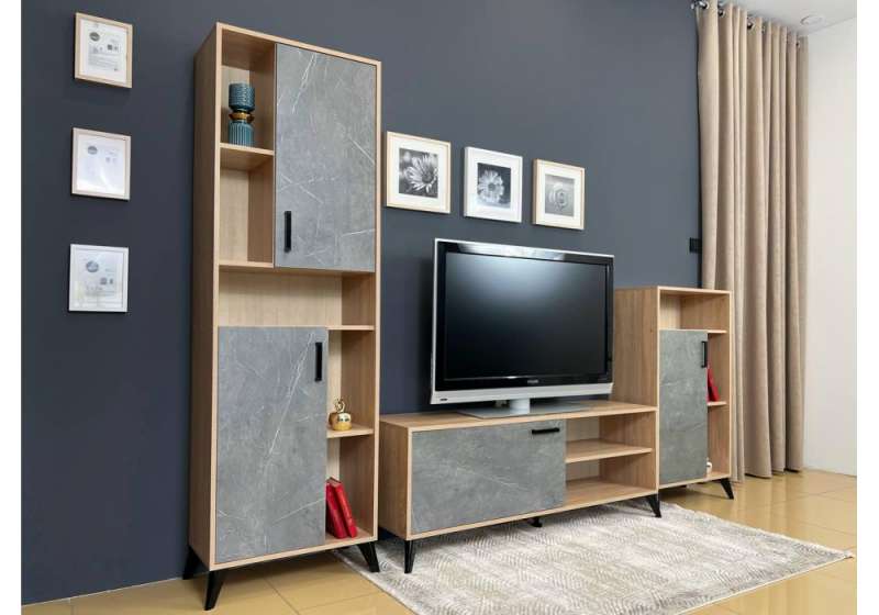 Готовые гостиные Алди дуб сонома / каспий темный ().
