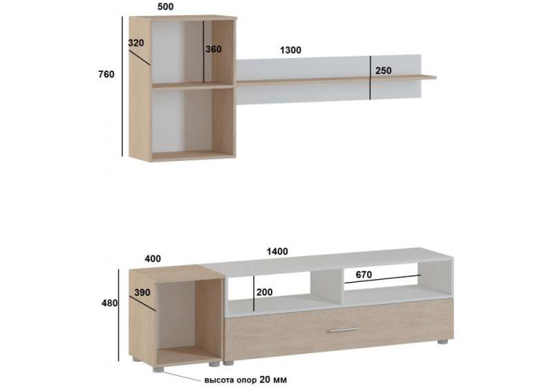 Готовые гостиные Алонсо дуб сонома / белая (180x39x124).