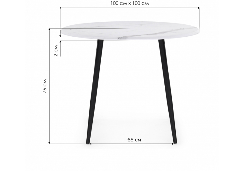 Стол деревянный Абилин 100 мрамор черный / черный матовый стол (100x76).