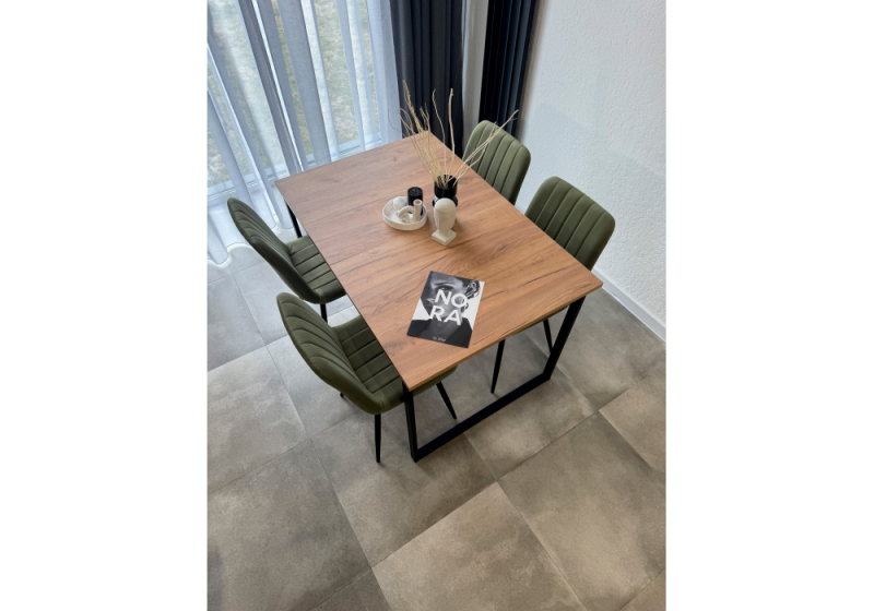 Стол деревянный Лиман 117 (157) x 77 дуб крафт золотой / черный матовый (77x75).
