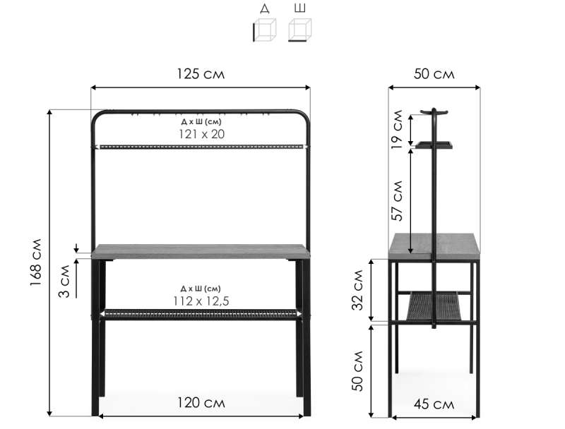 Барный стол Нари 120х50х171 галифакс олово / черный матовый (50x171).