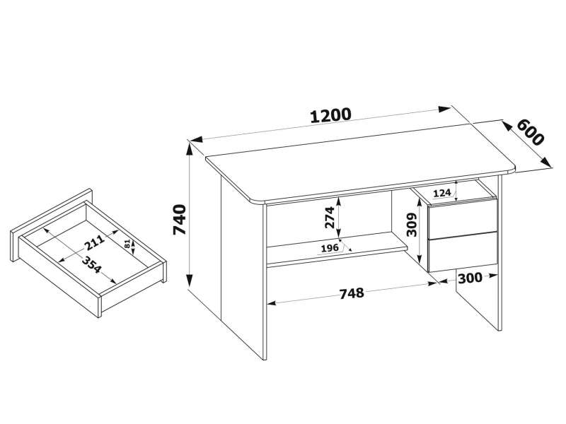 Компьютерный стол СПМ-07Б 120х60х74 (60x74).