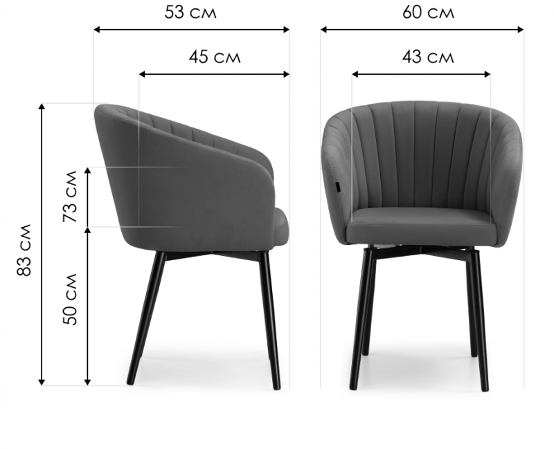 Высота подлокотников: 73 см.
