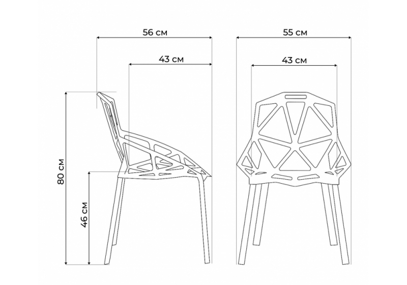 Стул One выдерживает нагрузку до 120 кг. Ножки выполнены из металла, сиденье и спинка - пластик.
